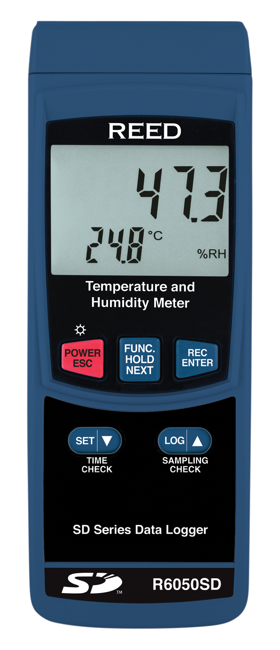 The R6050SD features data hold, maximum/minimum readings, and an easy-to-read backlit LCD display. Using an SD card (maximum 16GB), the user can manually record up to 99 readings or automatically by selecting a desired sampling rate from 1 to 3,600 seconds. Quickly generate an Excel file with raw data, without the use of software. Optional accessories include a tripod and AC adapter for long-term continuous monitoring.